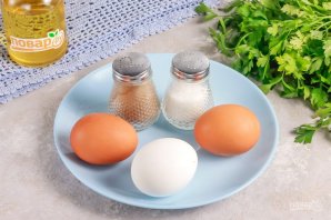 Подготовьте указанные ингредиенты. Заранее заморозьте куриные яйца в морозильной камере примерно 2-3 часа.