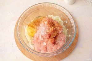 Если фарш получается жидковатым, добавьте 1 столовую ложку панировочных сухарей. Хорошо перемешайте фарш.
